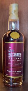Cote des Saints distillery started in 2019, originally they sold only gin and liqueurs (creme de menthe, and cacao), both became award winning, but this was only to generate revenue until their whisky was ready.   Cote des Saints are controlling almost everything in the whisky process, they grow their own barley, they don’t malt it, but they do mash it, and ferment it, and they age it, on premise.    They have the facilities to malt it, but they are not ‘experts’ in that process yet.